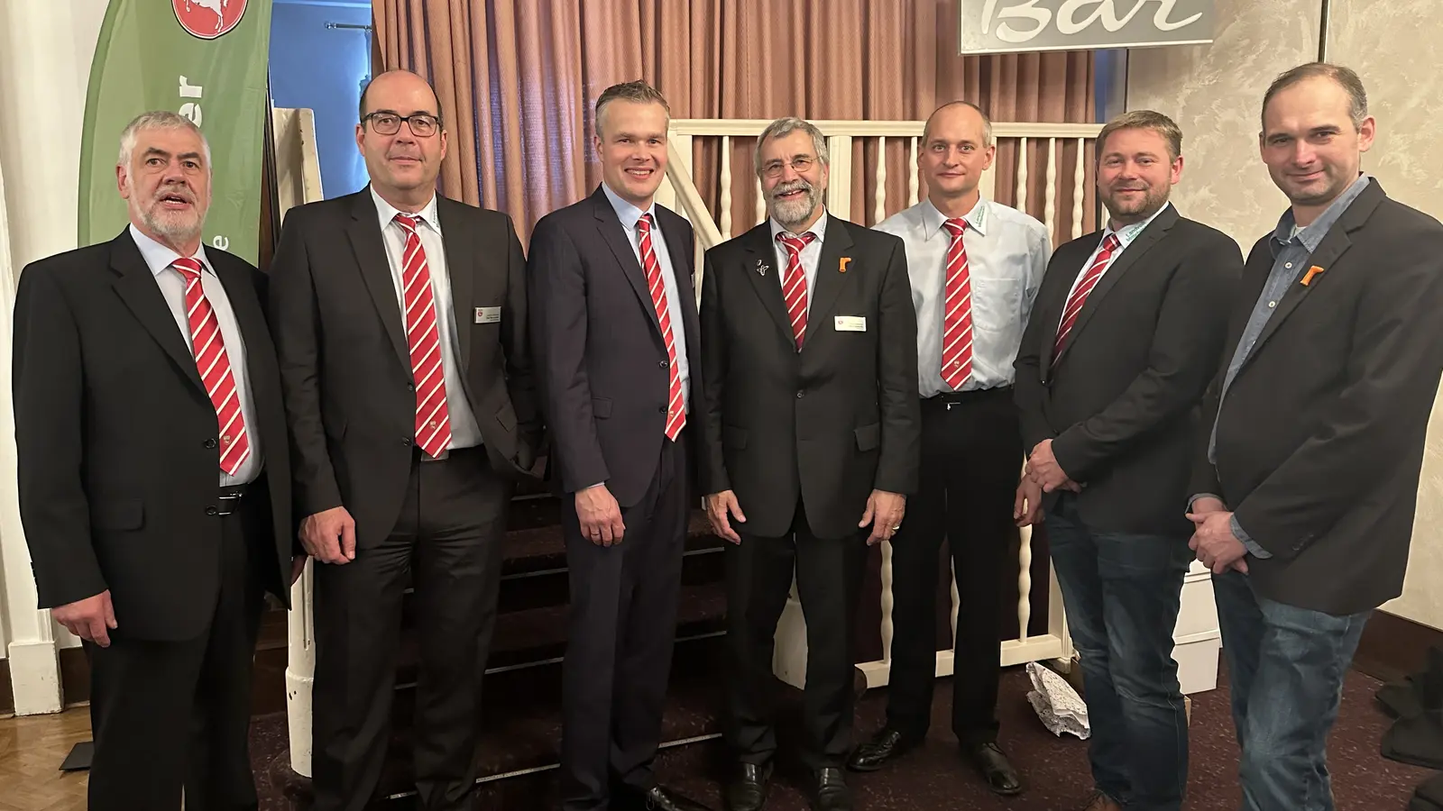 Der geschäftsführende Vorstand und der Geschäftsführer verabschiedeten Tobias Göckeritz nach 21 Jahren als Vorsitzender des Kreisverbandes. Von links nach rechts: Lüder Wessel (Dünsen), Geschäftsführer Olaf Miermeister, Vorsitzender Christoph Klomburg (Barrien), Tobias Göckeritz (Sonnenborstel), Andreas Gerling (Nordel), Hendrik Frerking (Rodewald) und Christian Lohmeyer (Bücken).